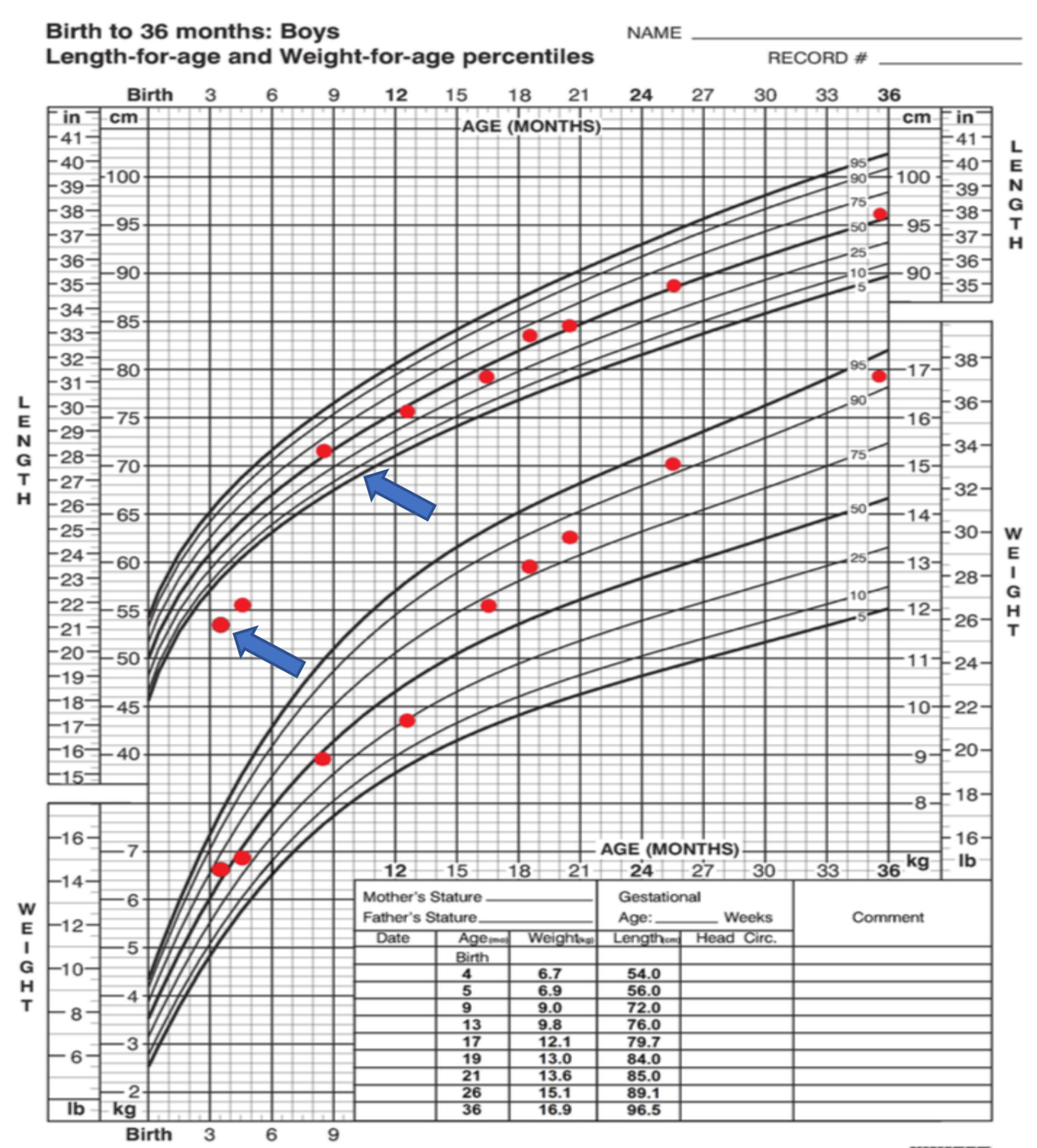 ![]() Click for large image | Figure 4. Growth chart demonstrating linear growth deceleration at diagnosis, followed by normal linear growth after surgical resection. |