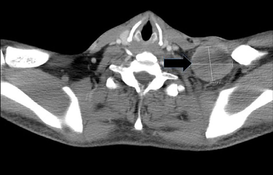 Figure 4. CT image depicting left supraclavicular lymphadenopathy/mass.