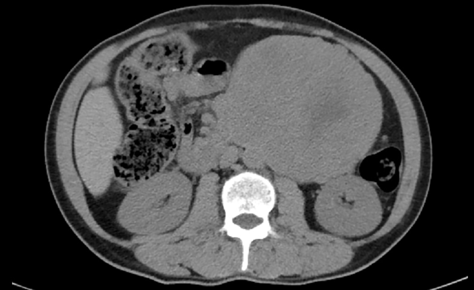 ![]() Click for large image | Figure 1. Abdominal CT scan showing left abdominal mass. |