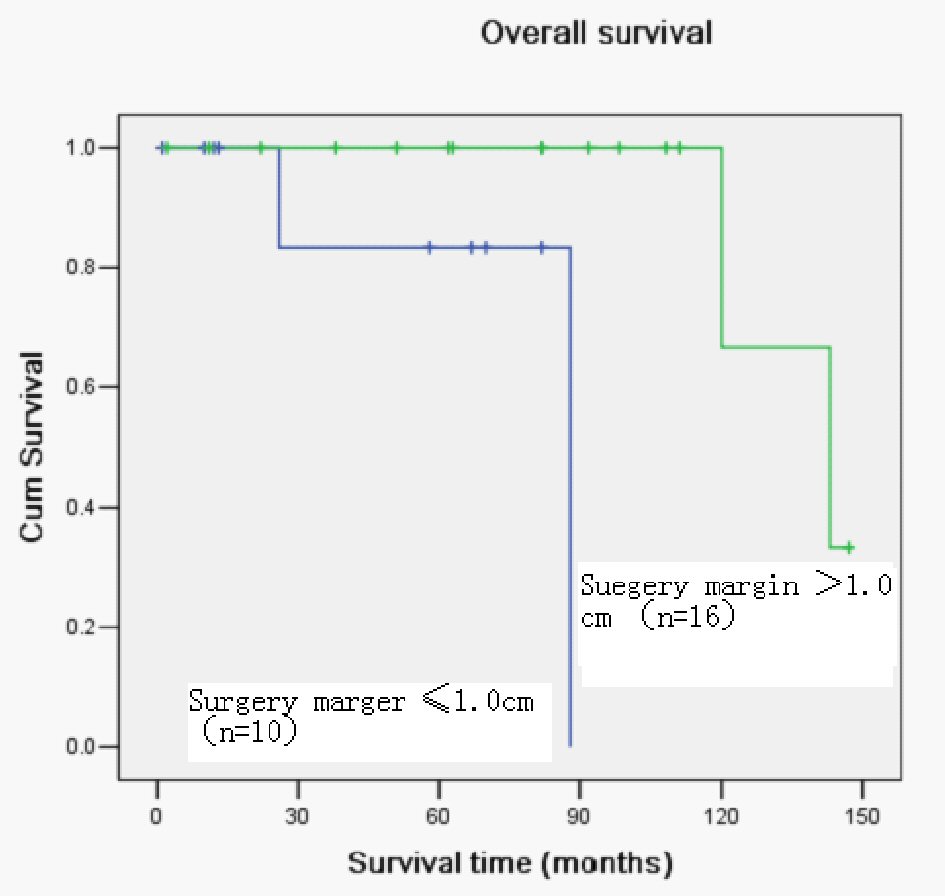 Results: The key prognostic factors influencing the survival were lymph nodes metastasis and surgery margin. Multivariate analysis revealed that there was no risk factor for patient survival.