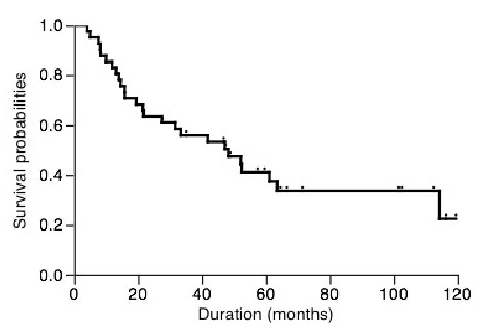 ![]() Click for large image | Figure 1. Overall postoperative cancer-specific survival of patients. |
