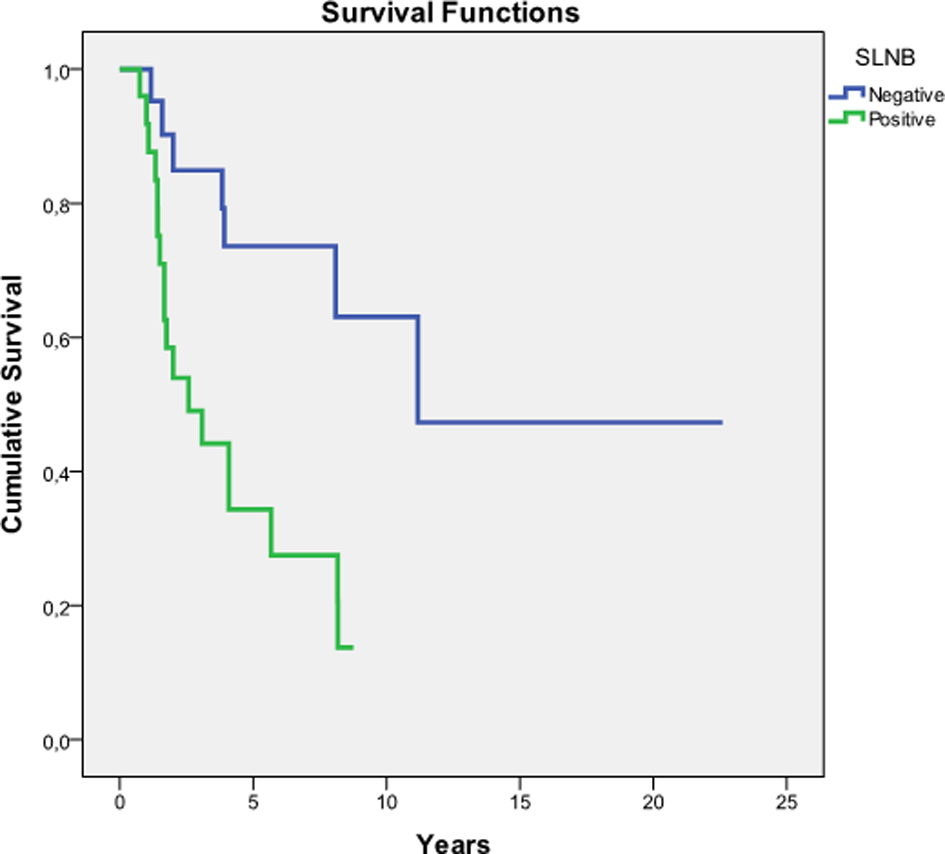 ![]() Click to view | Table 3. Survival Years According to SLN Status |