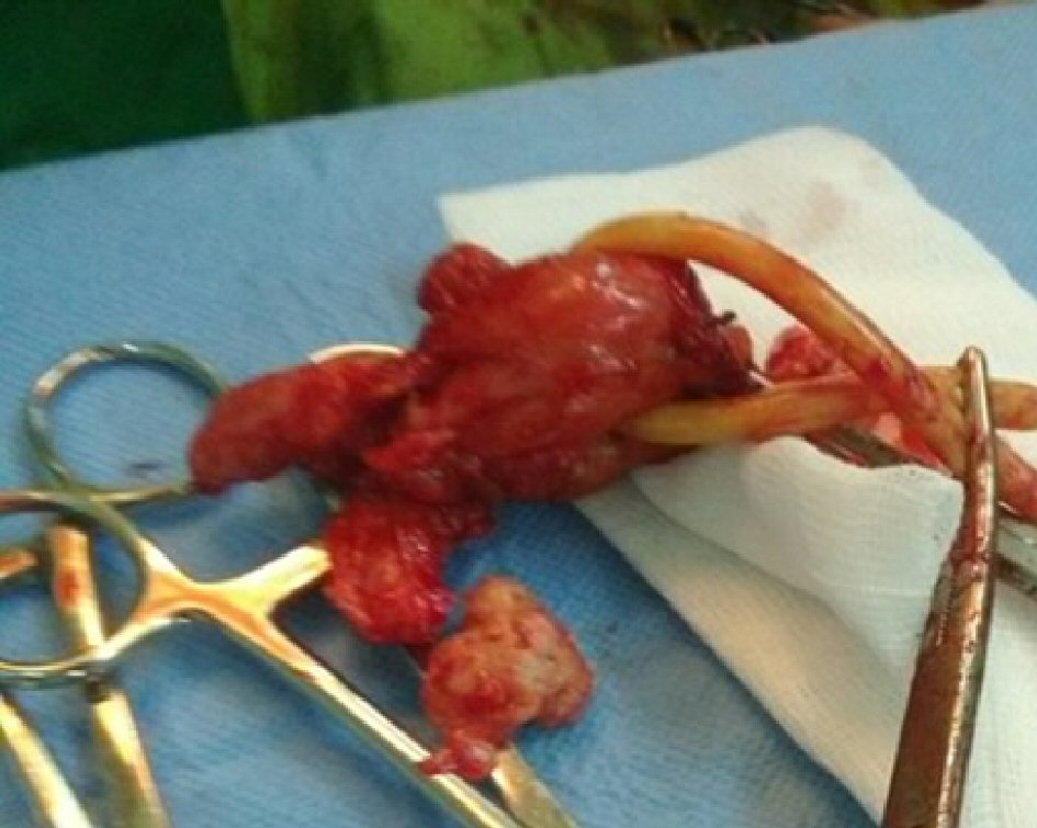 ![]() Click for large image | Figure 2. The postoperative prostate specimen en bloc with the seminal vesicles attached. |
