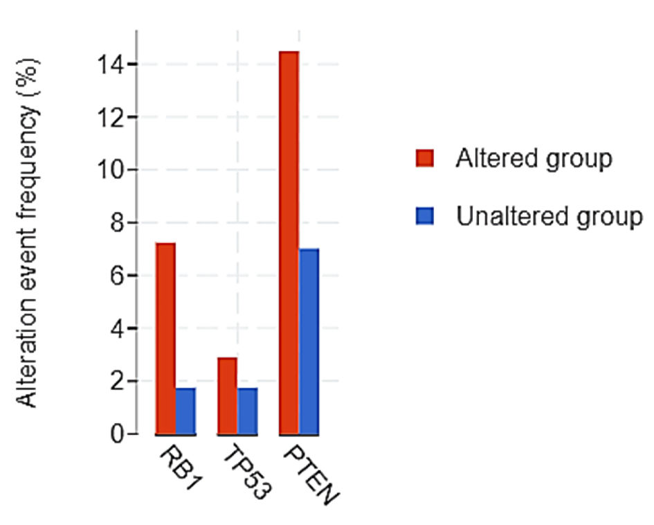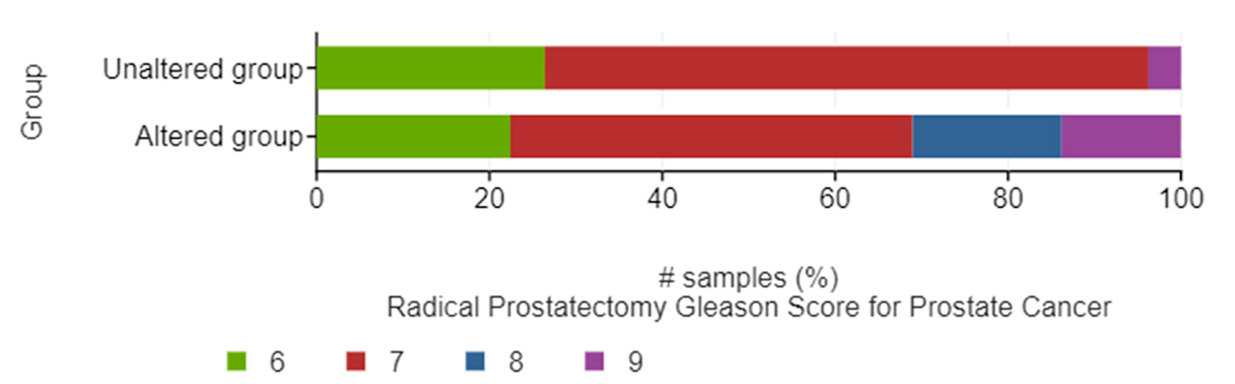 ![]() Click for large image | Figure 2. Bar graphs of the distribution between altered and unaltered groups of patients within different Gleason scores. |