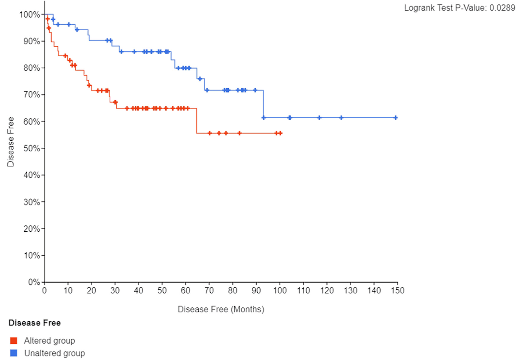 This study used a publicly available database, cBioportal for Cancer Genomics (www.cbioportal.org) with DNA and RNA sequencing data from 218 tumor samples (181 primaries, 37 metastases) and 149 matched normal samples obtained from patients treated by radical prostatectomy (RP) at Memorial Sloan-Kettering Cancer Center, USA [24]. Of those, 122 treatment-naive patients underwent RP, and were subsequently followed with history, physical exam, and serum prostate specific antigen (PSA) testing every 3 months for the first year, 6 months for the second year, and annually thereafter [24]. For all analyses, BCR was defined as PSA ≥ 0.2 ng/mL on two occasions [24].