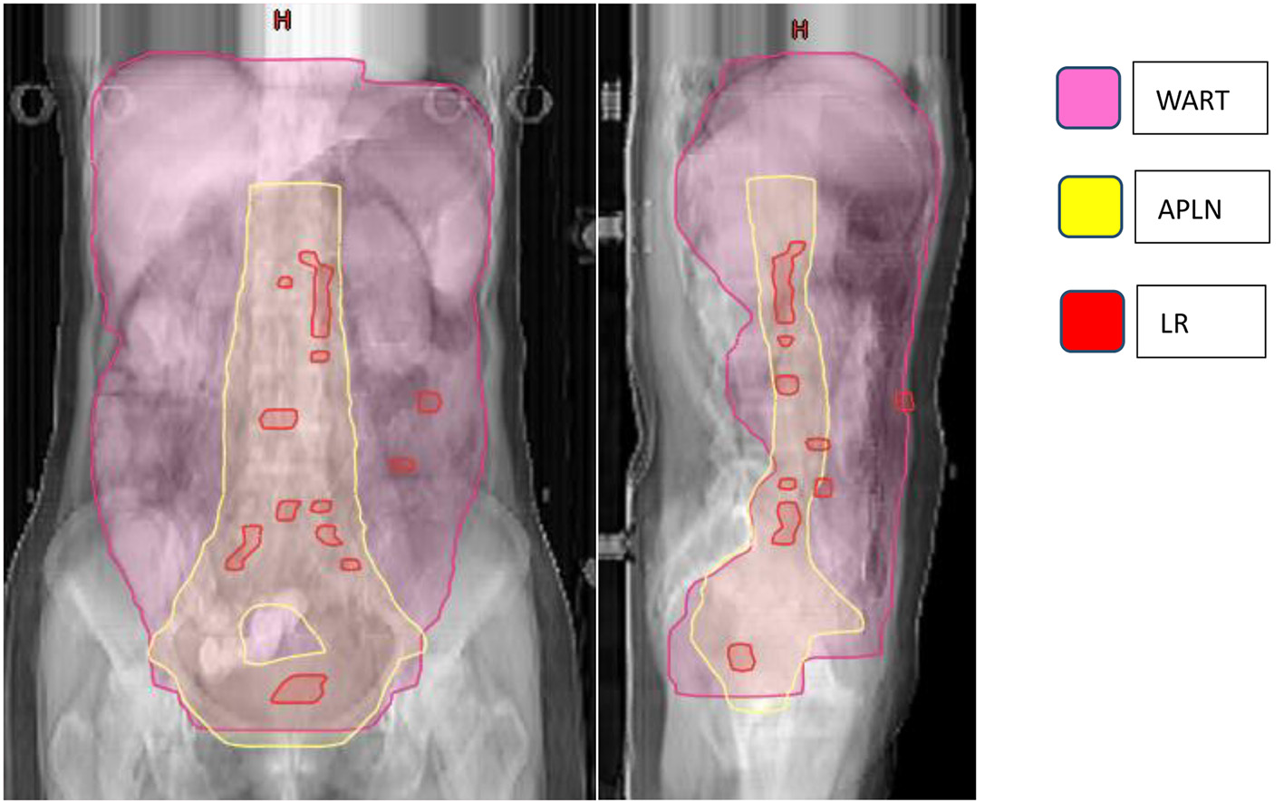 ![]() Click for large image | Figure 1. Illustration of the abdominopelvic lymphatic drainage area irradiation. |