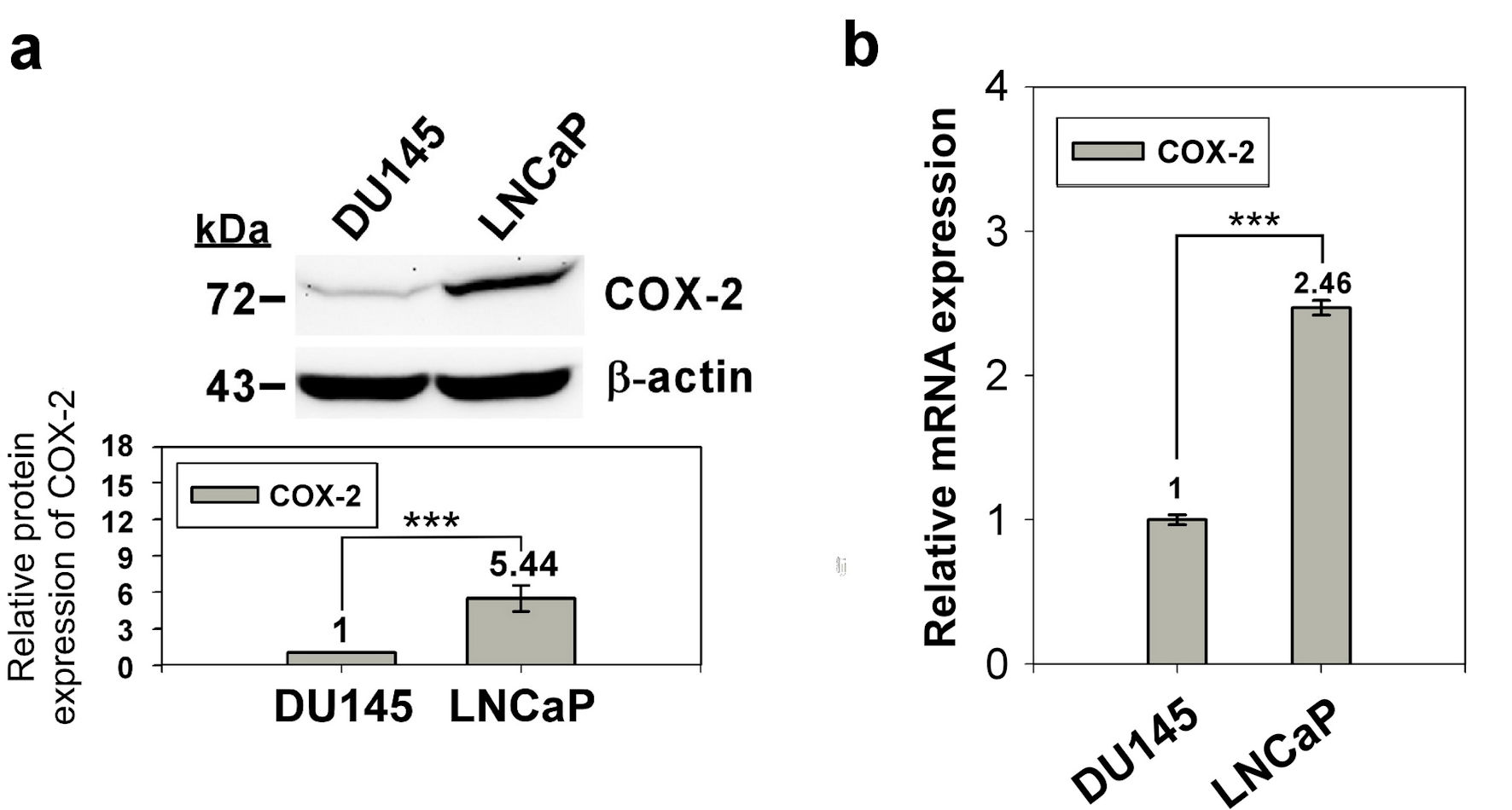 Higher expression of COX-2 in androgen-dependent LNCaP cells than that in androgen-independent DU145 cells