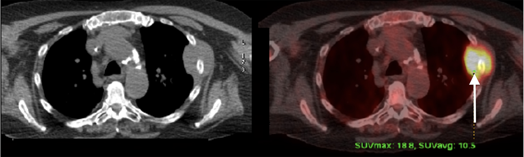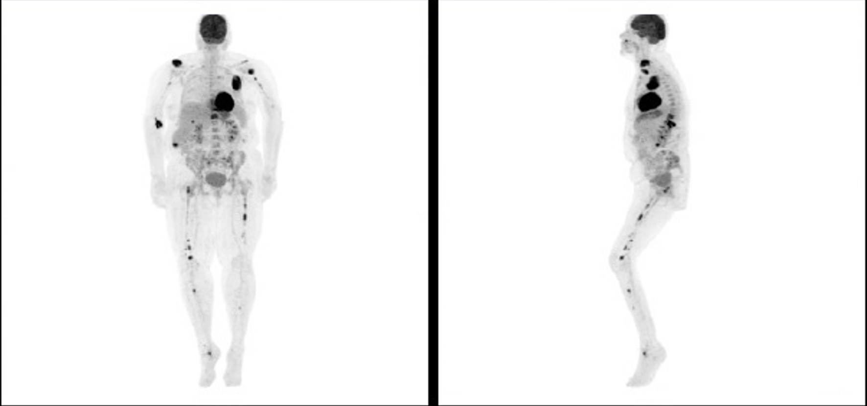 ![]() Click for large image | Figure 1. Positron emission tomography scan showing progression of disease following initial chemotherapy. |