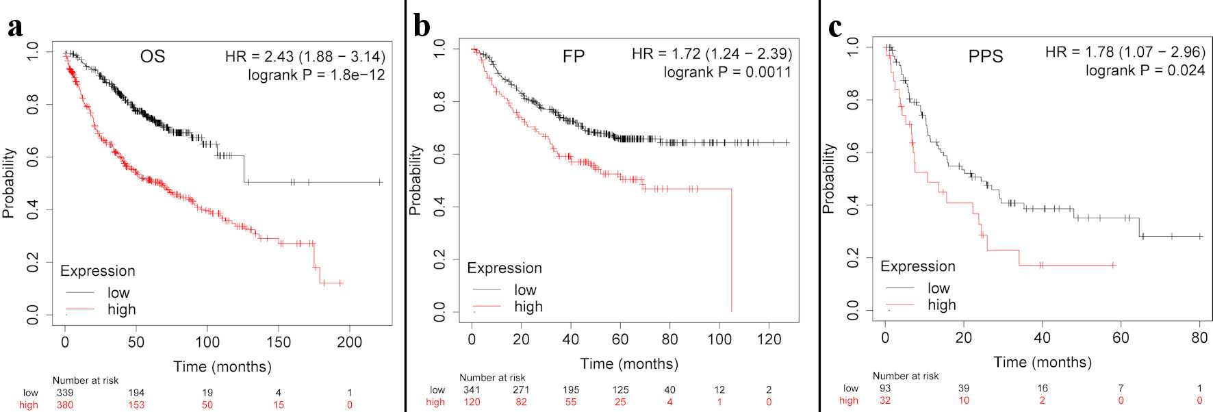 - Gyorffy B, Surowiak P, Budczies J, Lanczky A. Online survival analysis software to assess the prognostic value of biomarkers using transcriptomic data in non-small-cell lung cancer. PLoS One. 2013;8(12):e82241.
