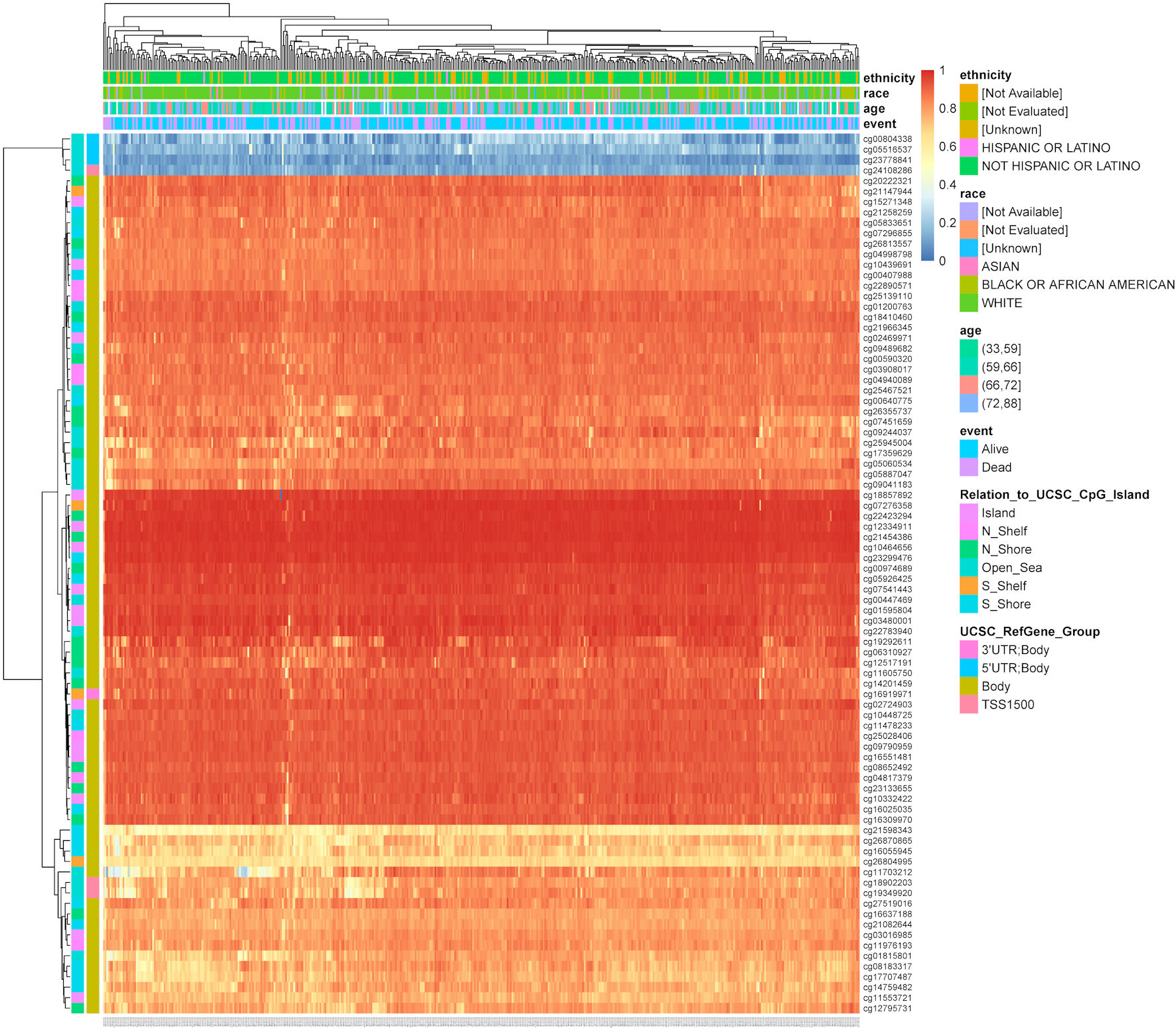![]() Click for large image | Figure 5. The heatmap shows TFDP1 methylation levels at different CpG sites in LUAD patients (MethSurv). TFDP1: transcription factor Dp-1; LUAD: lung adenocarcinoma. |