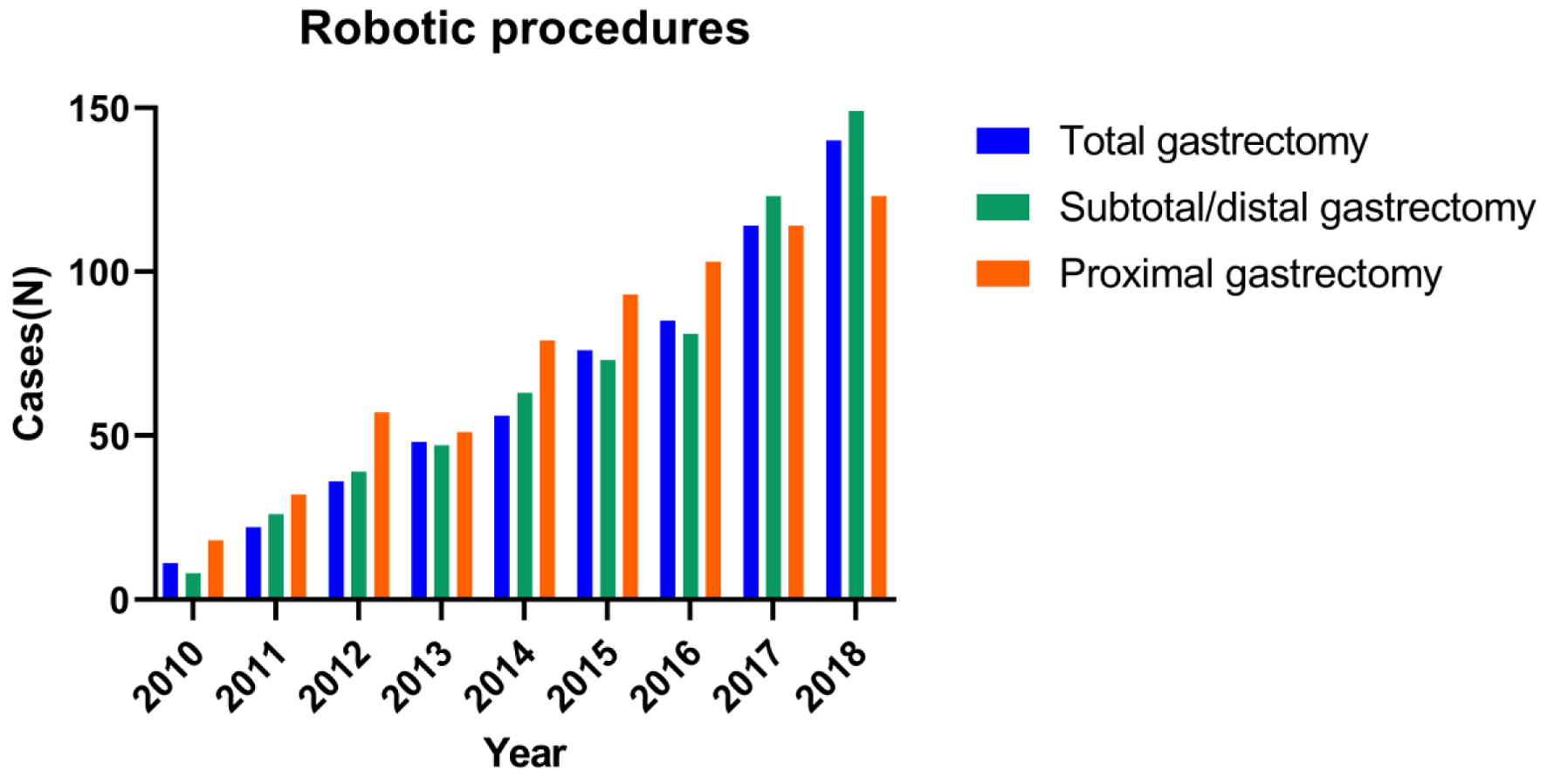 ![]() Click for large image | Figure 2. Trends in the use of the three major procedures of robotic gastrectomy. |