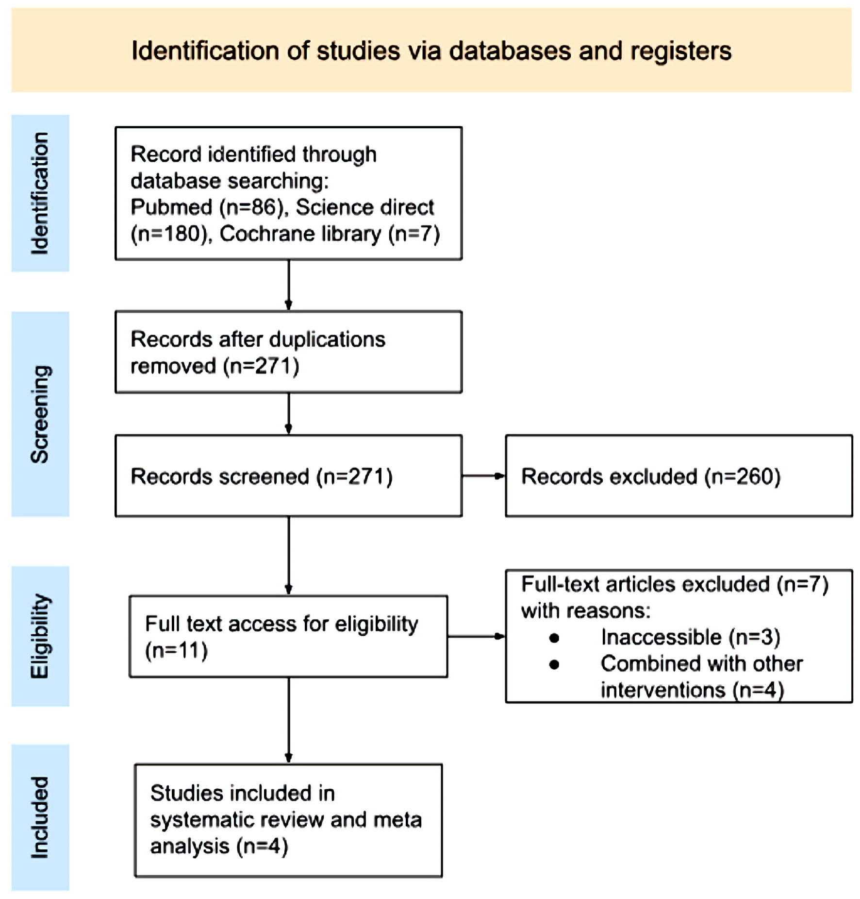 We included four studies to be analyzed in the final analysis, which are carefully chosen to meet our goal and eligibility requirements as outlined in the procedure section, Figure 1 shows the PRISMA 2020 algorithm with the study selection. Table 1 [8-11] summarized the findings from the four studies.