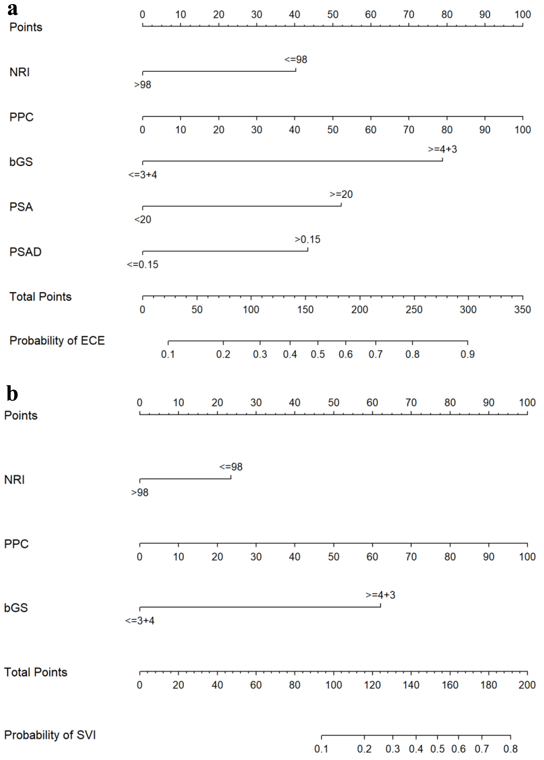 Nomograms for ECE and SVI based on NRI in primary cohort