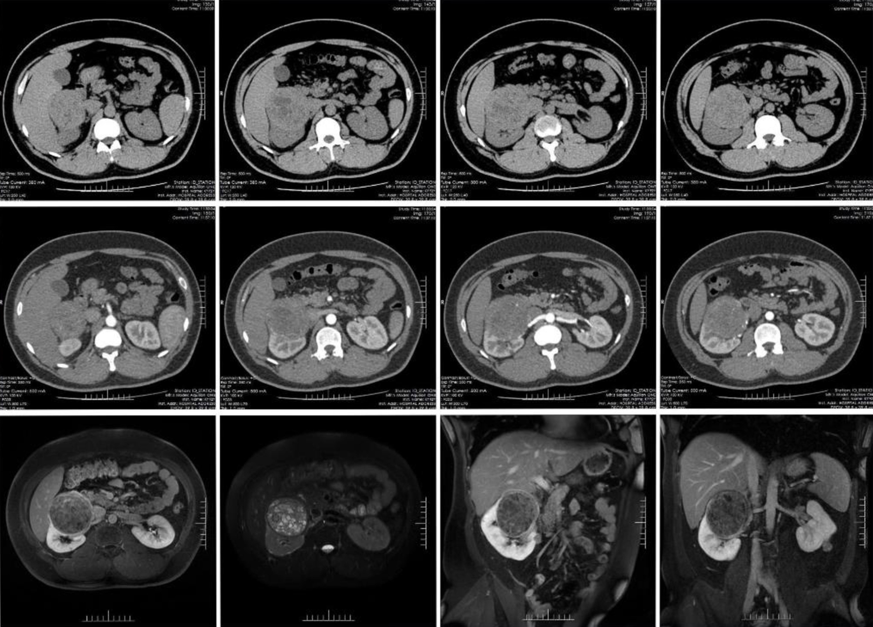 A 27-year-old male patient was referred to our hospital for evaluation of a right kidney mass, initially detected during a routine health checkup at a local hospital. The patient reported no symptoms such as abdominal or back pain, hematuria, urinary frequency or urgency, dizziness, palpitations, fatigue, or poor appetite. Physical examination revealed a flat and soft abdomen, with no abnormal pressure points, palpable masses or nodules, vertebrocostal point or lumbocostal point tenderness, and no renal region tenderness.