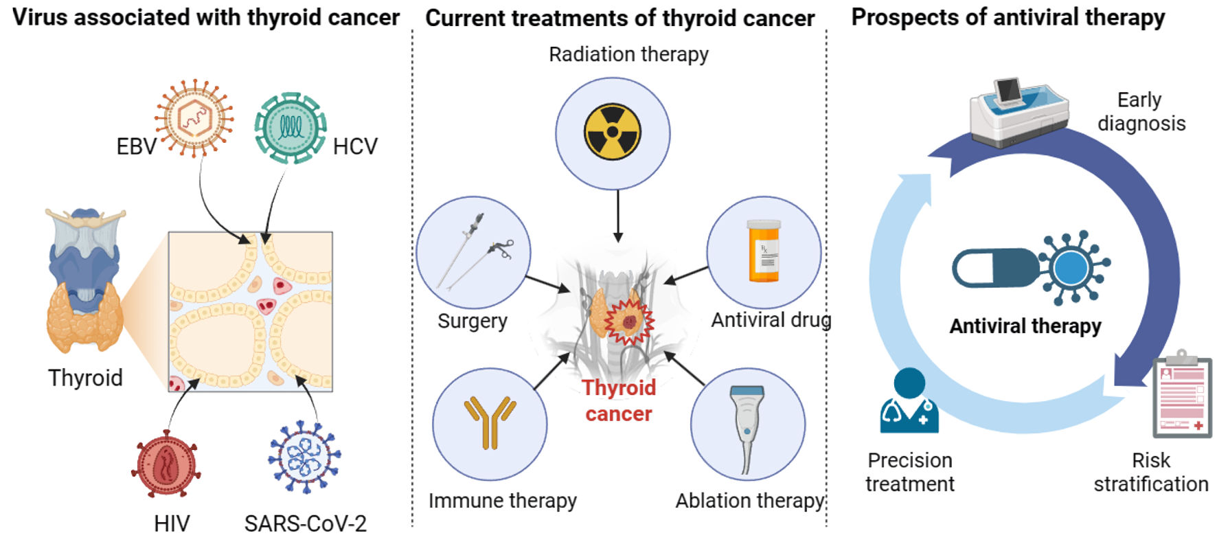 Keywords: Thyroid cancer; Virus diseases; Epstein-Barr virus infections; Hepacivirus; HIV; SARS-CoV-2; Therapeutics
