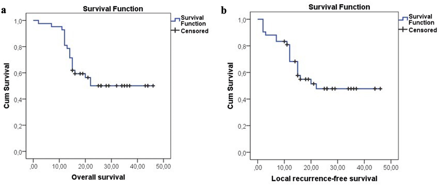 ![]() Click for large image | Figure 3. Overall and local recurrence-free survival for all patients. |