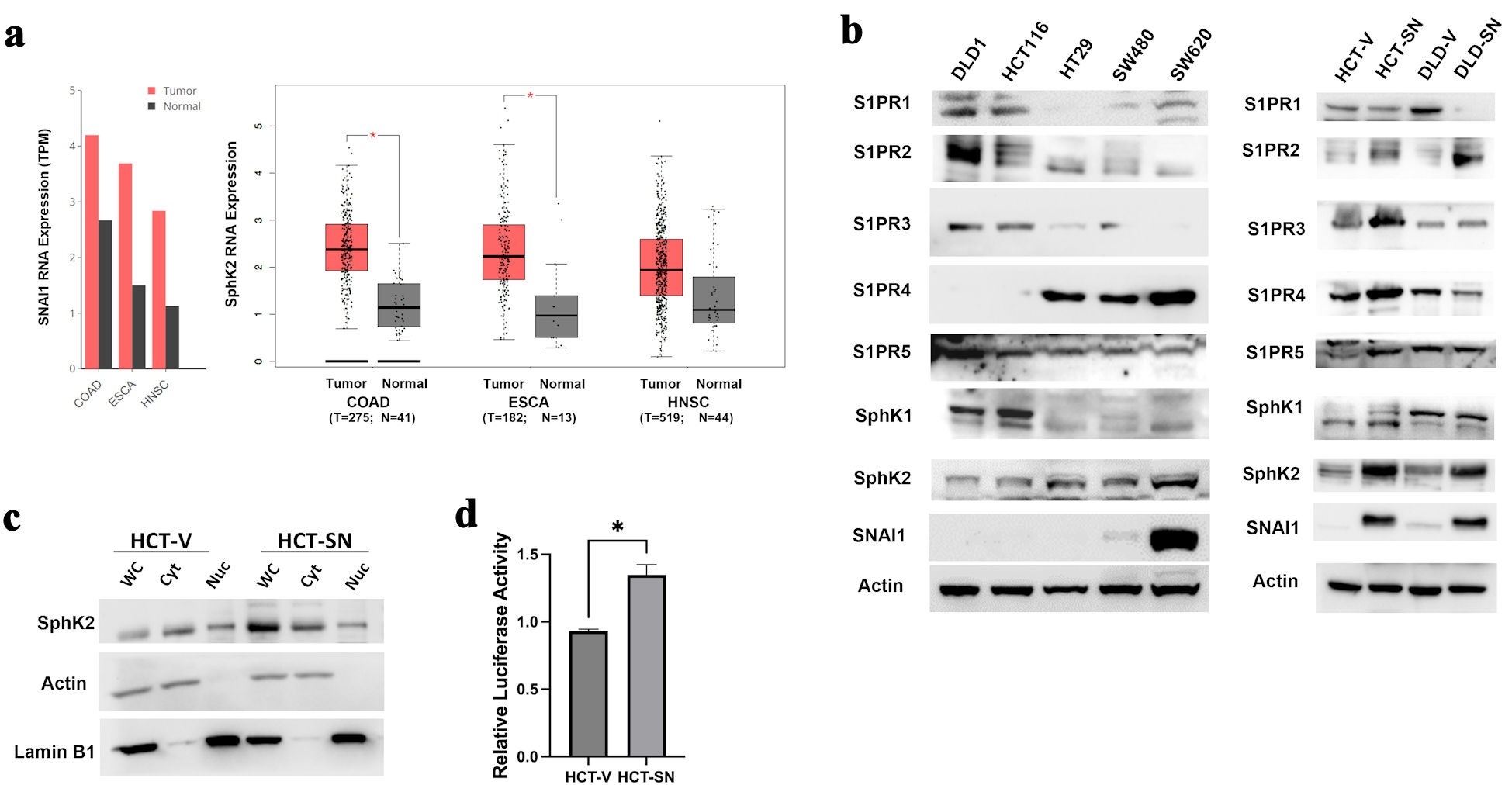 SNAI1 induces SPHK2 promoter activity in SNAI1 overexpressing CRC cells