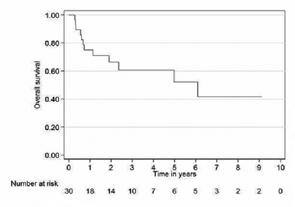 ![]() Click for large image | Figure 3. Overall survival curve for curative patients. |