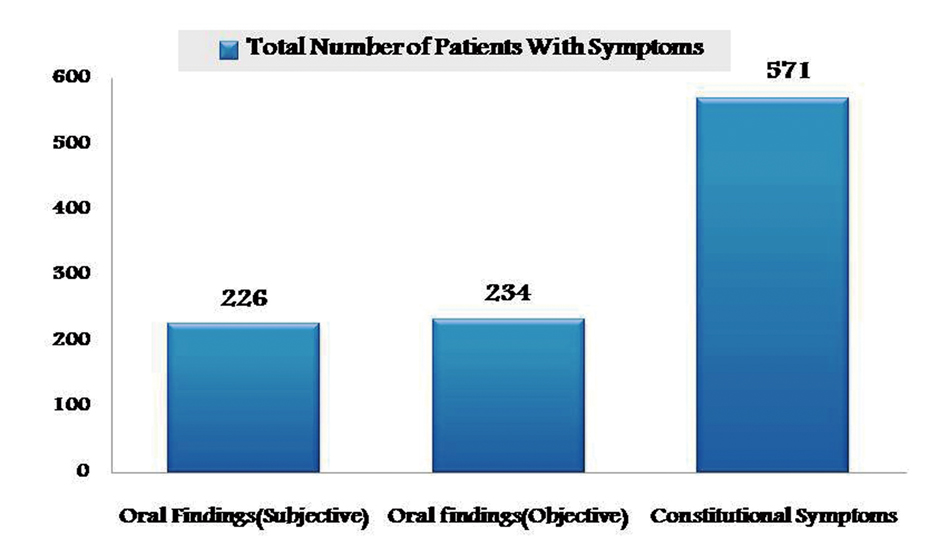 Results: Among the patients undergoing chemotherapy in both groups, prevalence of oral findings was found to be highest with methotrexate whereas constitutional symptoms was found to be highest with doxyrubicin. Whereas in radiotherapy patients subjective and objective oral symptoms increased from 10th - 30th fractionated dose of radiations and then subsequently decreased and constitutional symptoms were found to be consistent in all fractionated dosages with lowest at 50th fraction. Under combined chemo and radiotherapy patients, constitutional symptoms were highest than the oral findings.