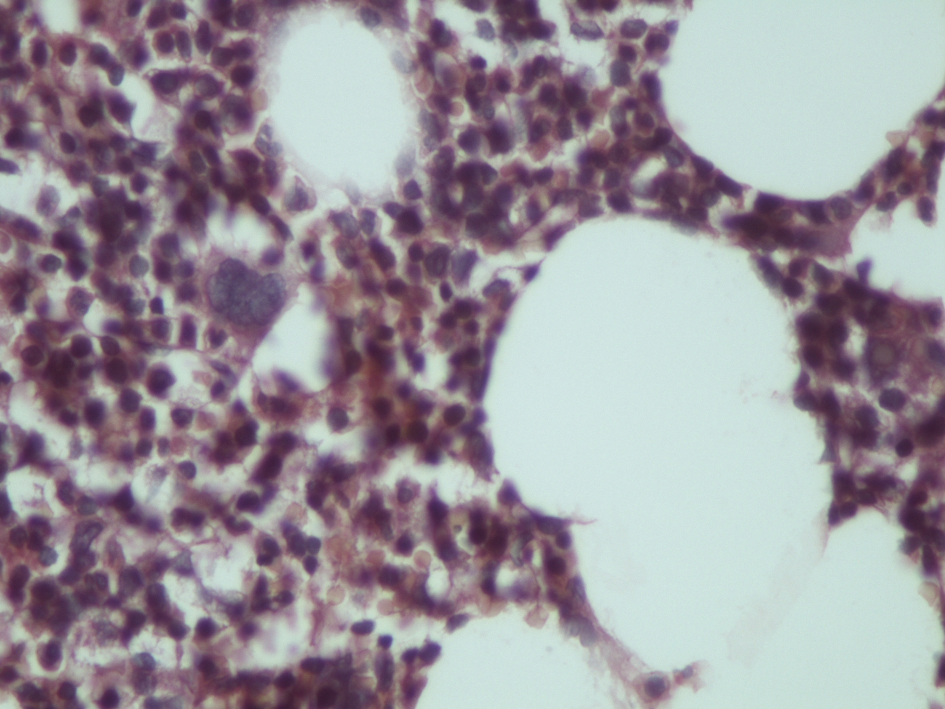 ![]() Click for large image | Figure 2. Histological section of myelolipoma indicating haemopoetic elements and lipocytes (hematoxylin-eosin × 240). |