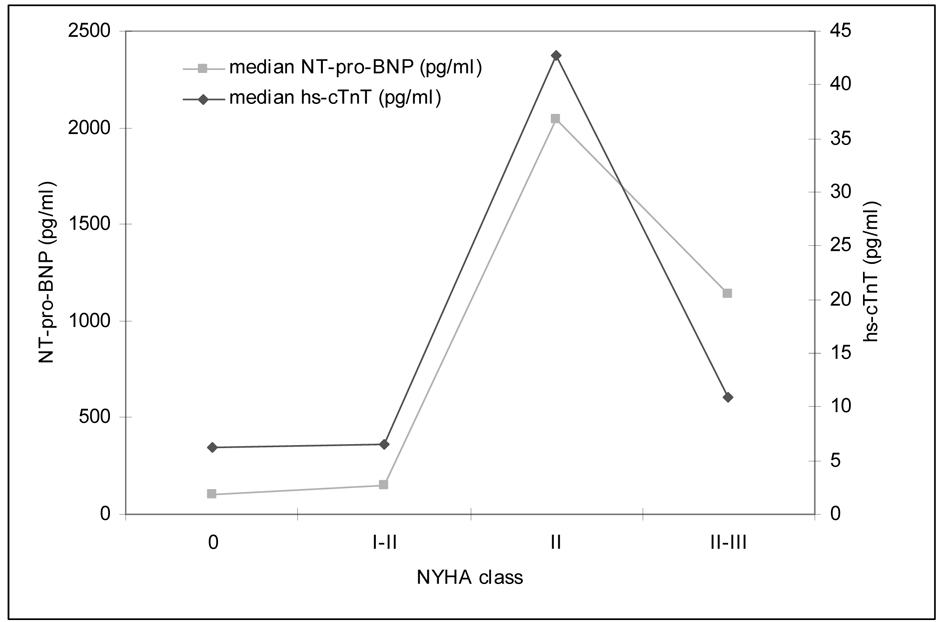 hs-cTnT, NT-pro-BNP levels, and NYHA class