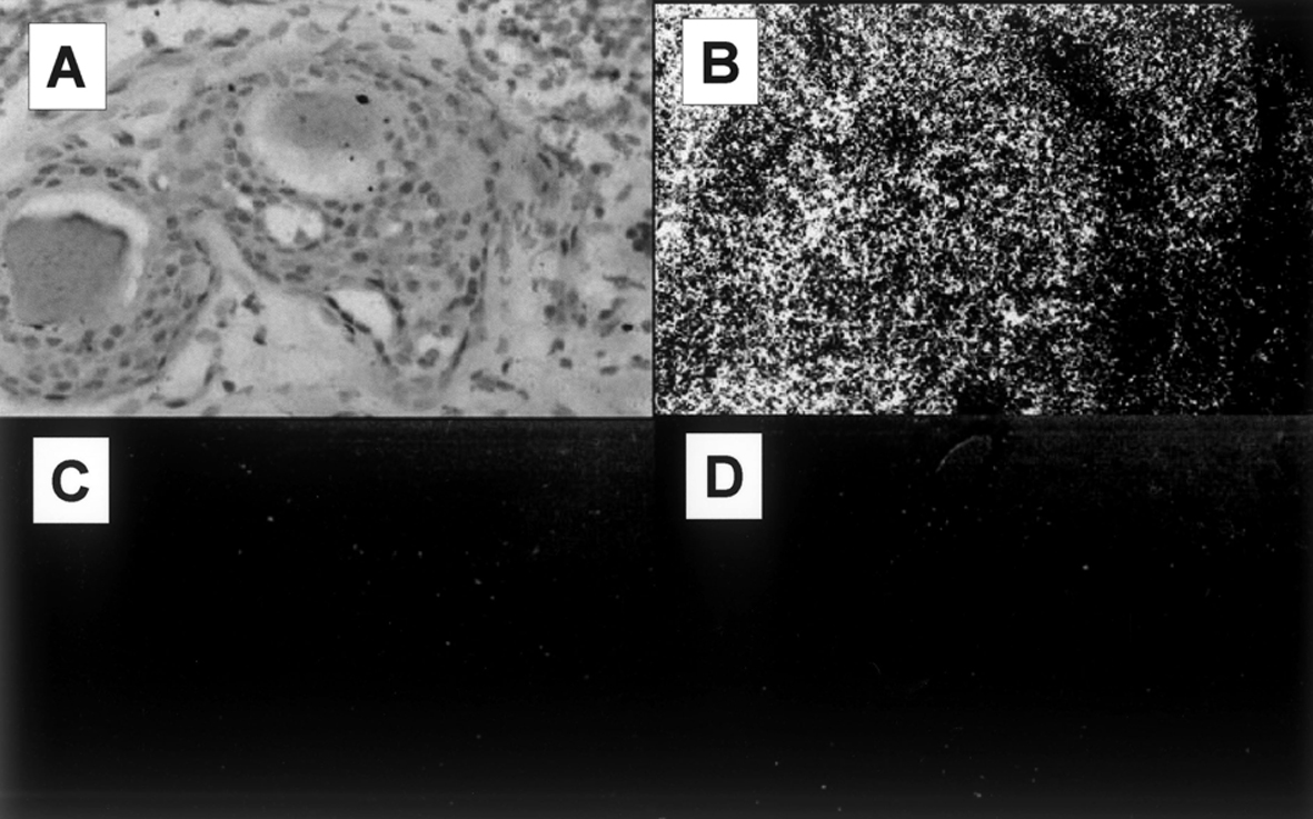 ![]() Click for large image | Figure 1. DcR3 mRNA expression analysis by ISH. (A) Light microscopy of breast cancer cells. (B) DcR3 mRNA expression is prominent in breast cancer cells, as visualized with the antisense probe. (C) The signals for the sense probe are negligible in the breast cancer cells. (D) The signals for the antisense probe are negligible in the normal breast cells. |