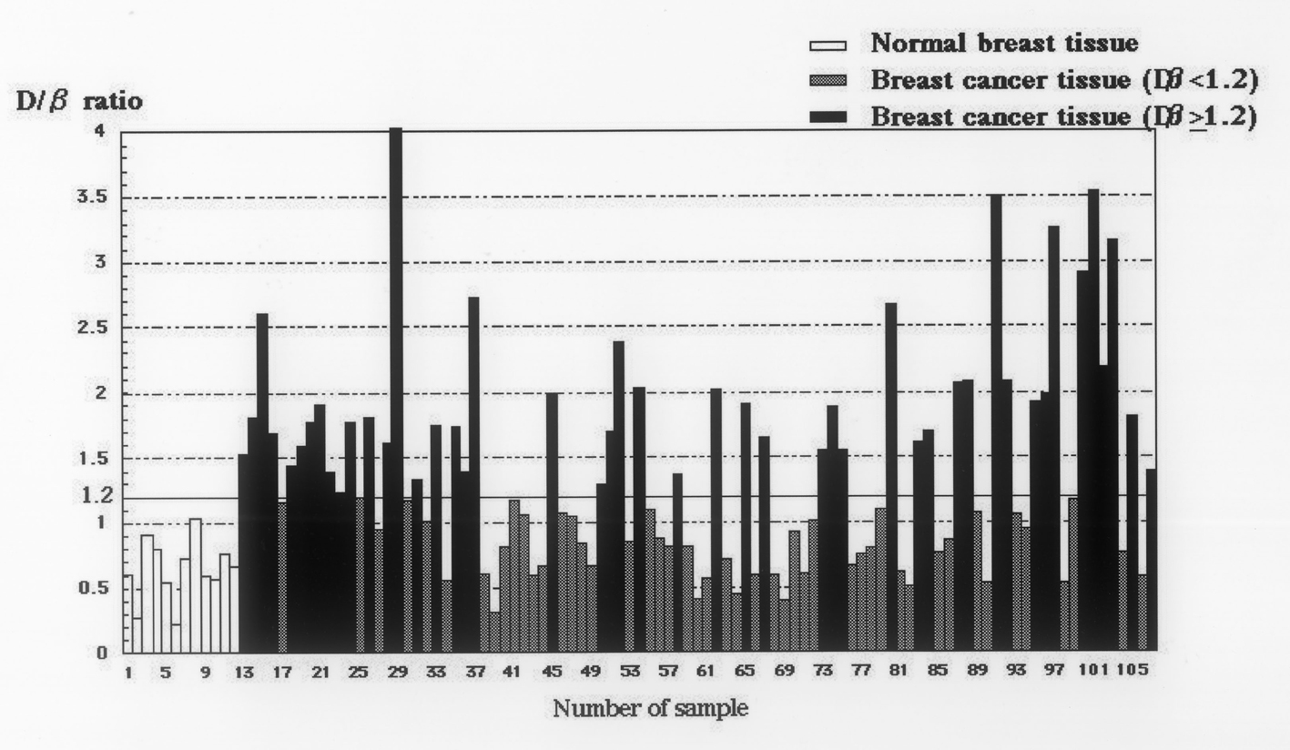 The present study comprised 100 consecutive Japanese patients who underwent surgical resection for primary breast cancer during the 5-year period between January 1996 and December 2000. Four patients with distant metastases and one patient with inflammatory breast cancer who underwent neoadjuvant chemotherapy resulting in the absence of cancer cells in the resected specimens were excluded. The remaining 95 patients (94 women and 1 man) with median age of 56 years (range, 30 - 87 years) formed the basis of the current retrospective study. Consent was obtained from all individuals who participated in the study.