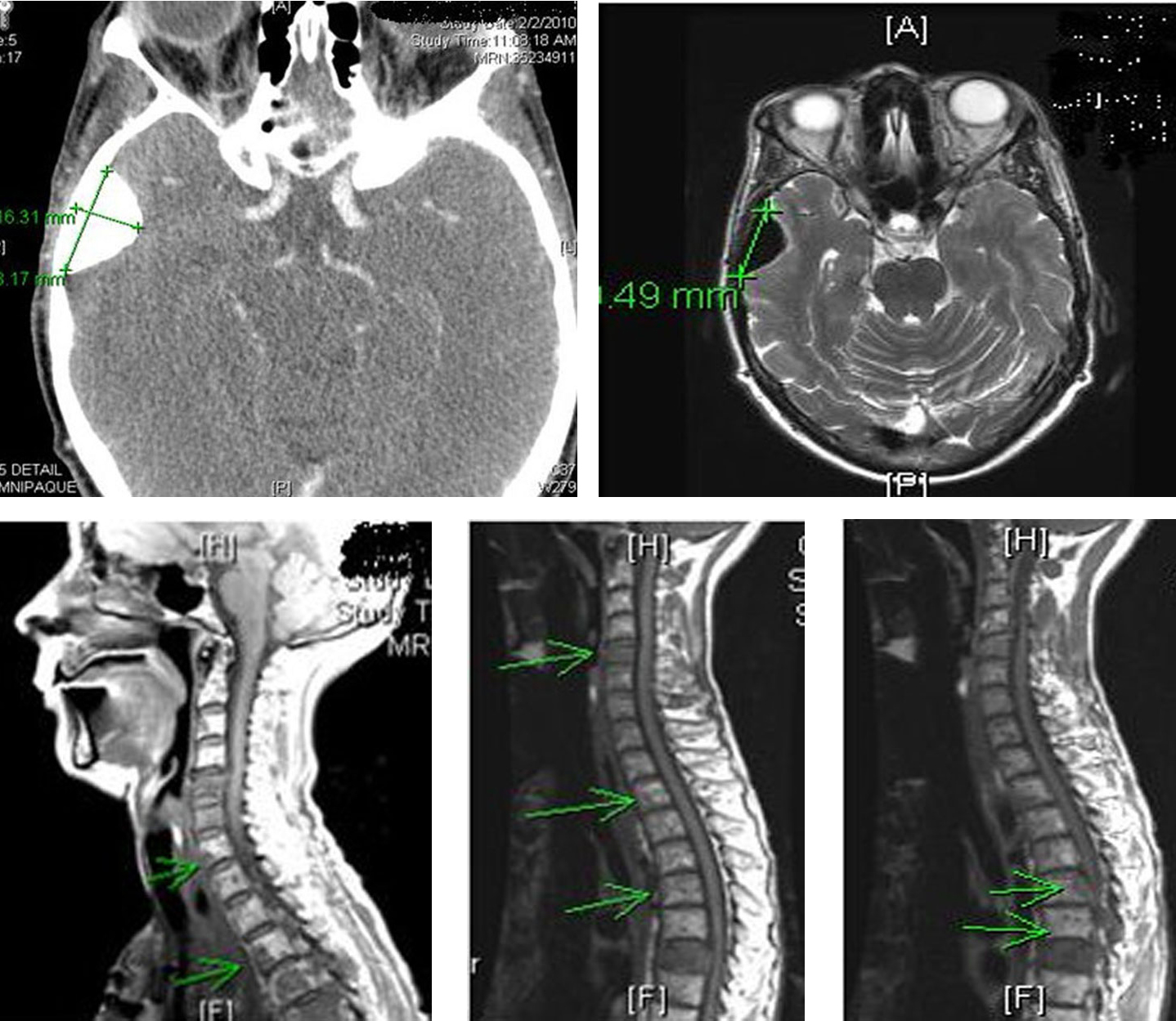 ![]() Click for large image | Figure 10. Computer tomography of the head and spine region showing left orbital metastasis and worsening spinal metastasis. |