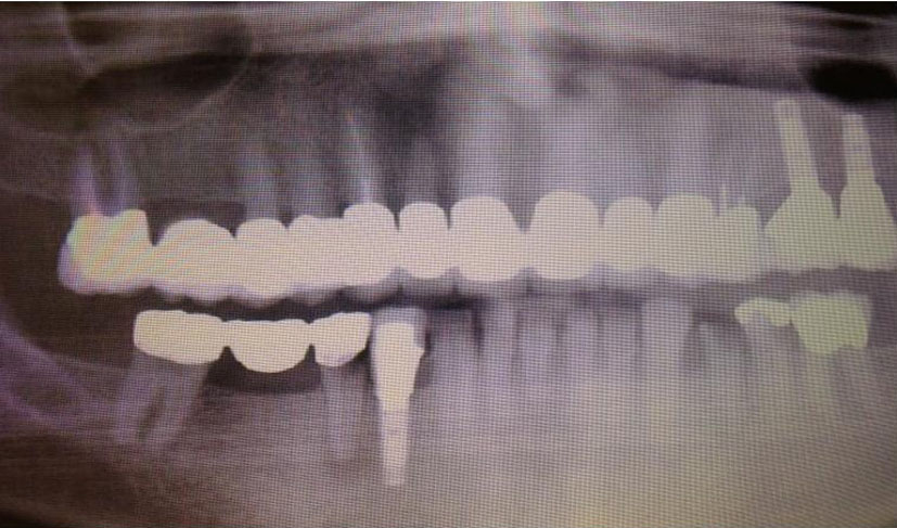 She received radiation to her left orbit, L5 sacrum and T2-T5 vertebrae. Both zoledronic acid and denosumab were continued. However, patient developed osteonecrosis of her jaw (ONJ) secondary to bisphosphonates (Fig. 11). A dental consultation was obtained and both zoledronic acid and denosumab were stopped.