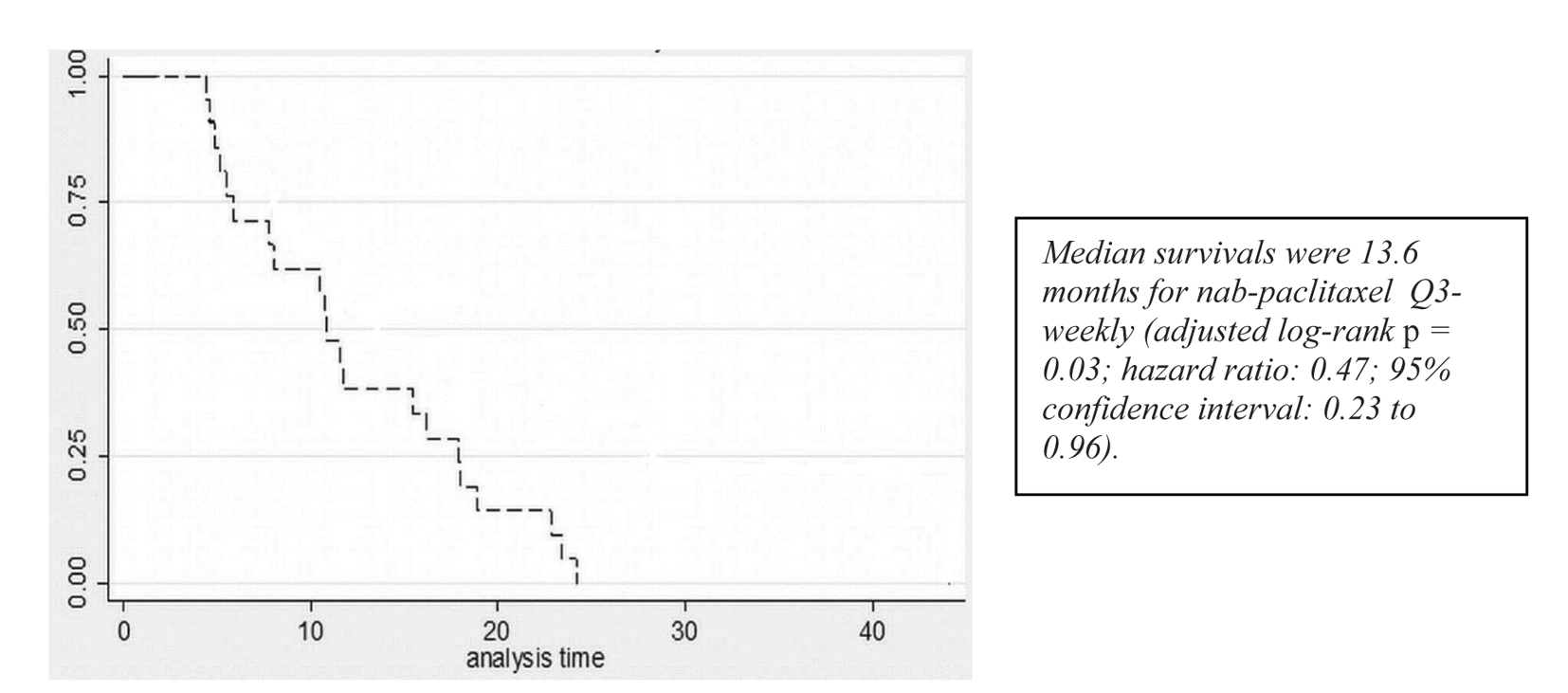 ![]() Click for large image | Figure 1. Survival curves for patients receiving q3w nab-paclitaxel. |