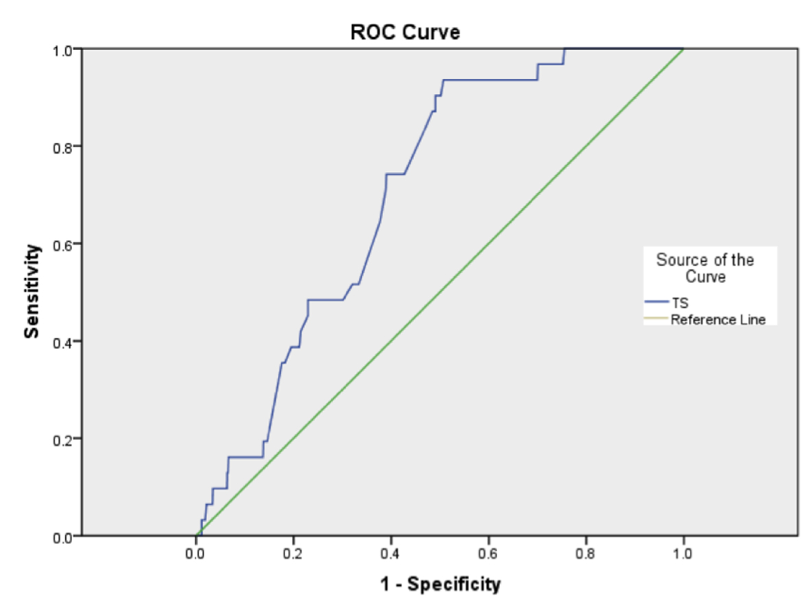 ![]() Click for large image | Figure 1. Receiver operating characteristic curve for thoracoscore (TS). |