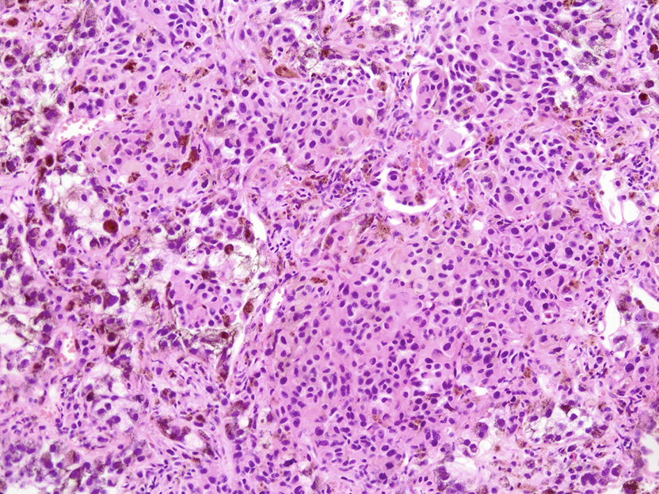 ![]() Click for large image | Figure 9. Microscopic view of lung lesion on biopsy. Lung metastasis without necrosis was shown. |