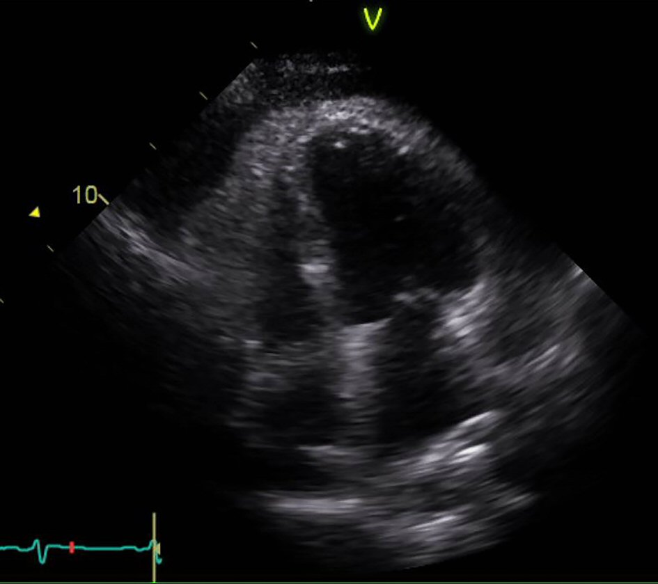 Figure 4. Echocardiogram apical view showing right ventricular collapse in diastole.