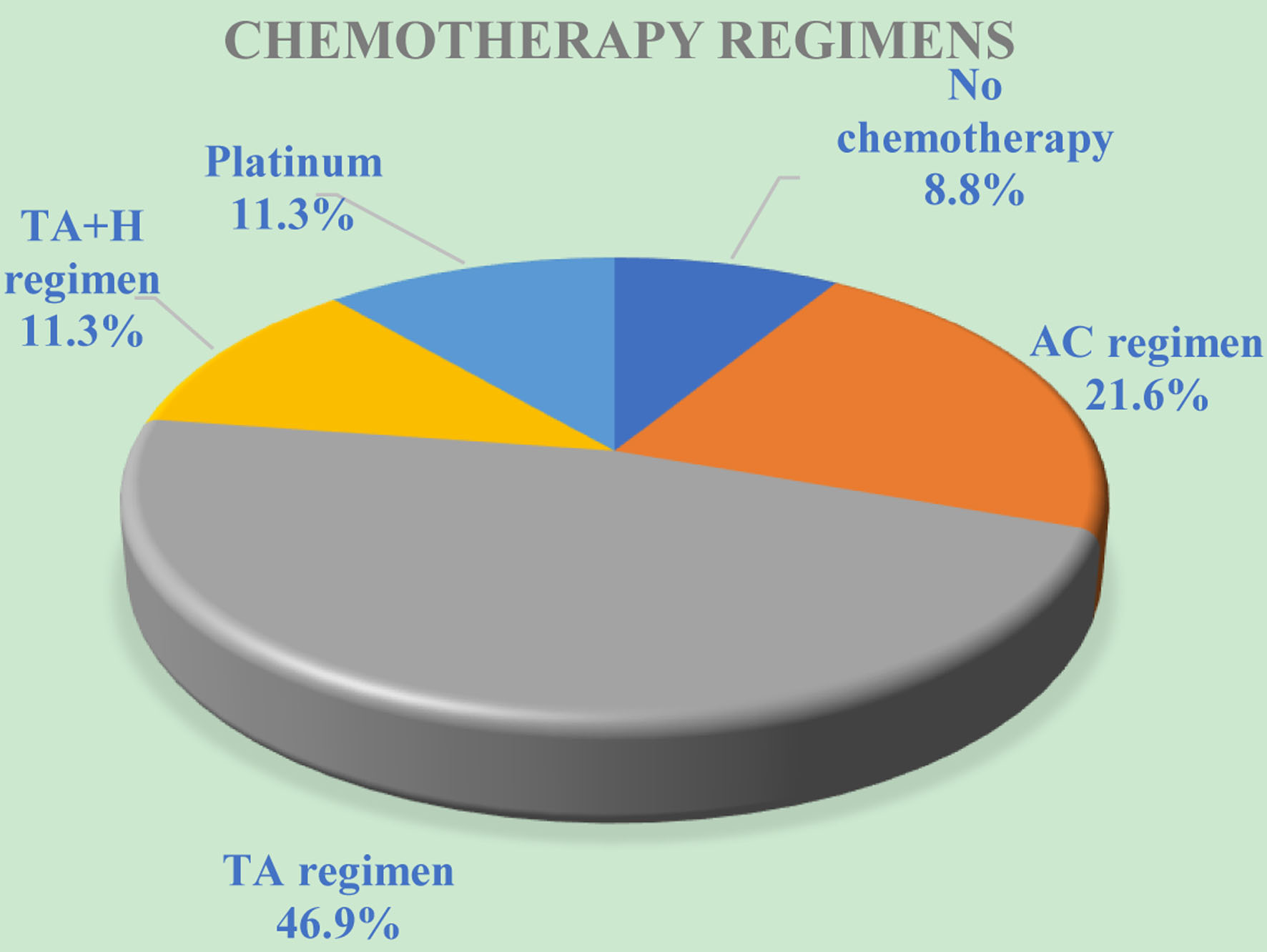 | aWilcoxon rank test for comparison of two population means (paired samples). bKruskal-Wallis for comparison of more than two population means (unpaired samples). *Statistically significant (α = 5%). AC: anthracycline cyclophosphamide; TA: paclitaxel, anthracycline. TA + H: paclitaxel, anthracycline and trastuzumab; SD: standard deviation. | ||||